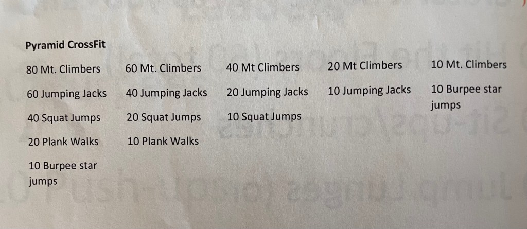 Tuesday – No class (Text me if you want a workout and I’ll send it to you)